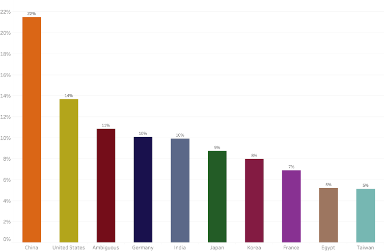 We also found China has more misinformation narratives than any other country. This may be because China is the world’s most populous country.