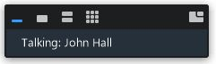 When a PowerPoint or YouTube video is being presented, Gallery View or Presenter View disappears and is replaced by a smaller overlay window showing participants. This smaller window may still obstruct the presentation but can be dragged out of the way or reduced in size. At the top of the window are 4 icons that adjust its size. When one of these icons is selected the view of participants can be reduced from a small grid down to a single bar. The view selected is denoted by the blue bar as seen in Figure 12 where only the speaker’s name is displayed. The fifth icon located at the top right displays the speaker on top of his presentation.