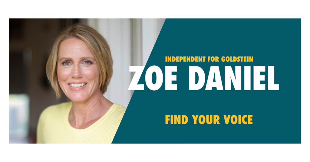 - We have a very special guest, Zoe Daniel, who is the Voices of Goldstein independent candidate in the upcoming federal election. You may remember her as an ABC foreign correspondent in Washington and other trouble spots around the world. I am also, at time of writing, trying to secure another high profile guest. I will be discussing what the Voices movement means, what influence it would have in Parliament, what their party leanings are, etc. All members will of course be welcome to ask questions.