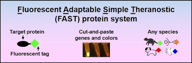 In our new research, we’ve added more than a dozen tools to the toolbox for understanding tumours in Tasmanian devils. These are Fluorescent Adaptable Simple Theranostic proteins – or simply, FAST proteins.